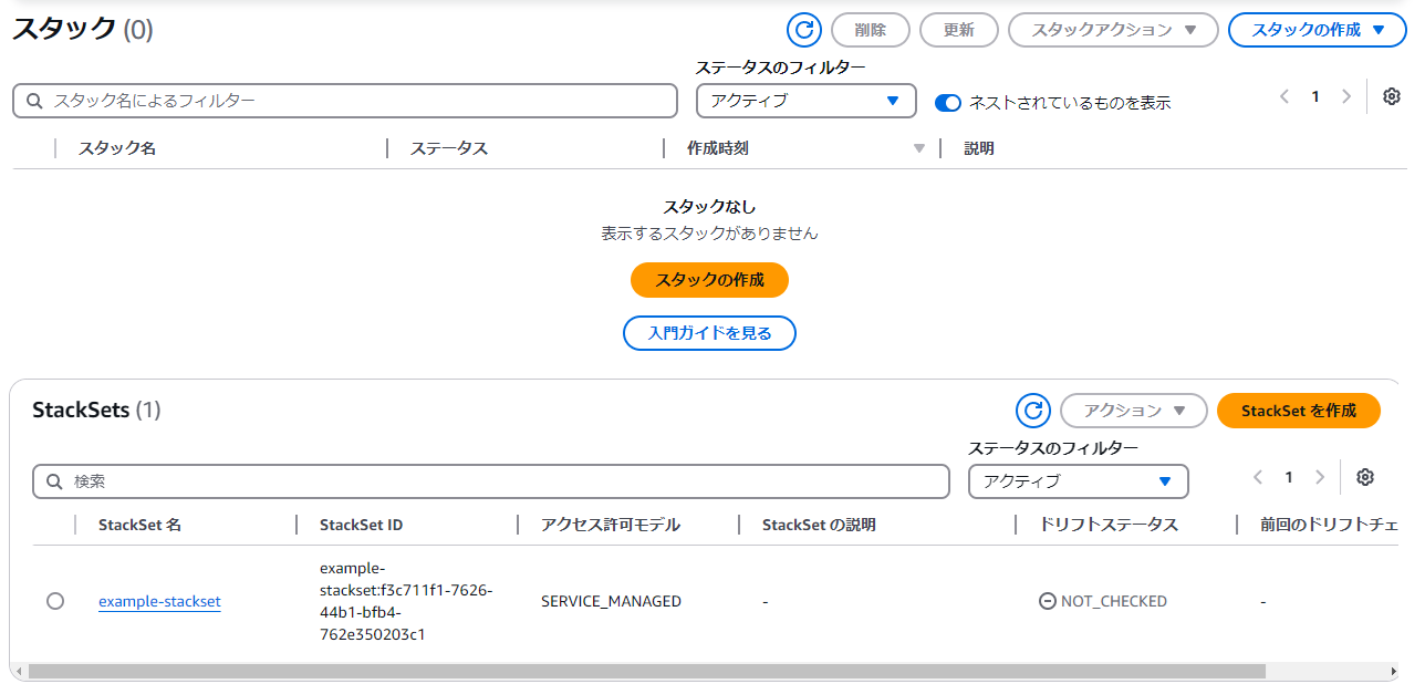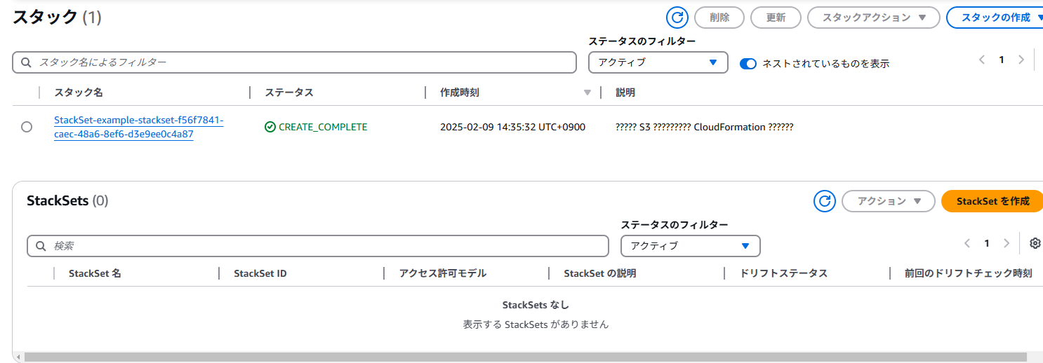 ということで、いずれも想定通りの挙動。StackSets→スタックを生んでいる