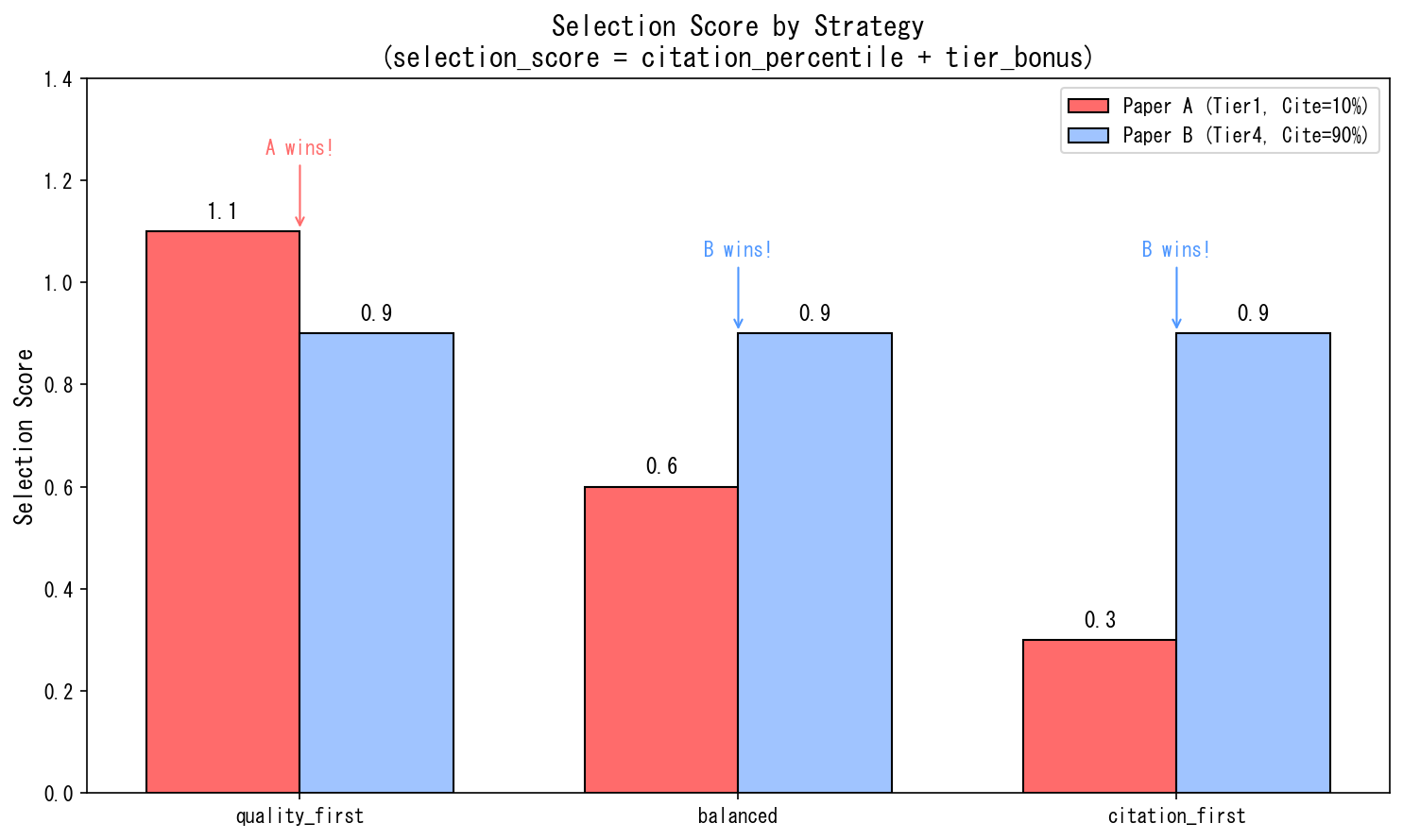 • quality_first / balanced / citation_first の3戦略