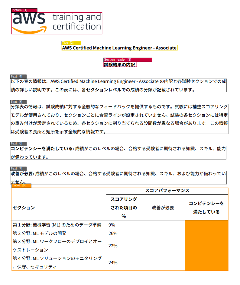 OCRを使わずに、レイアウト解析の結果からテキスト抽出を行うことも可能。PDFからテキストを抜いているだけなので日本語も対応。参考